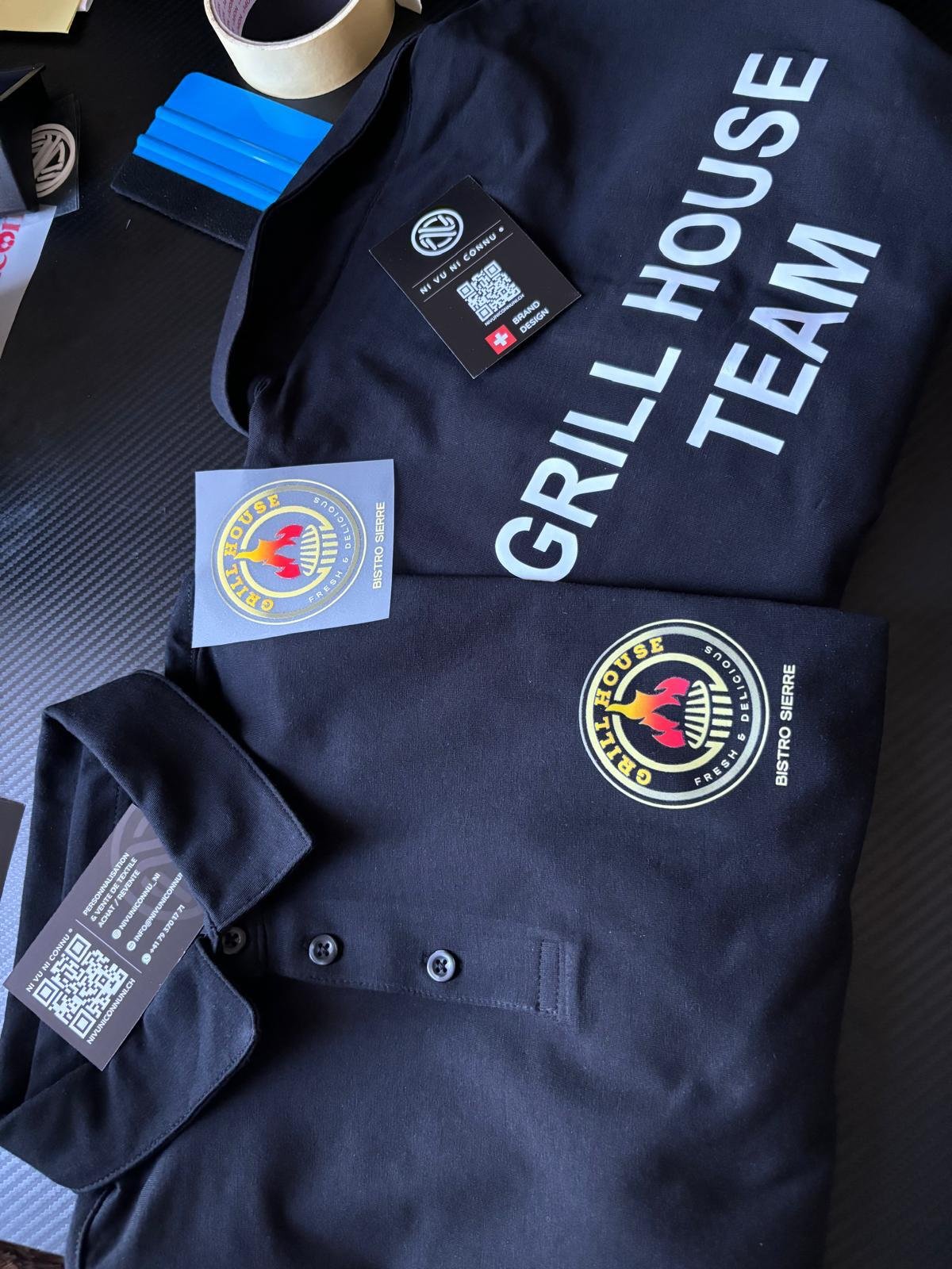 Selon le projet. La pose sur site est proposée pour les vitrines, véhicules et signalétiques dans tout le Valais — surface dégraissée, application à sec ou à l'eau savonneuse selon le format, finition raclette pour un rendu sans bulle. Pour les petits stickers ou les envois Suisse, le sticker est livré prêt à poser avec sa pellicule de transfert.